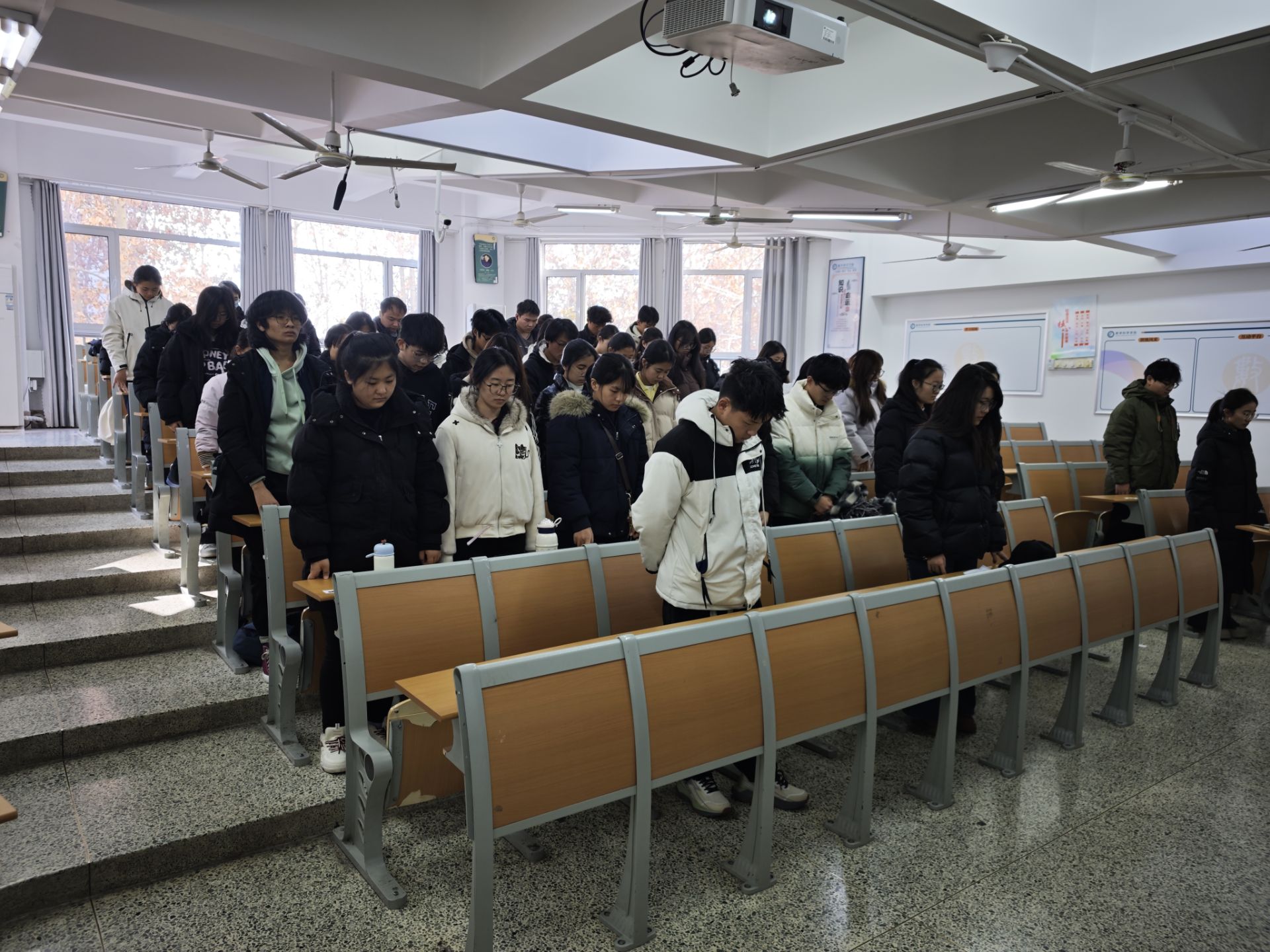 活动伊始,全体同学在志愿者的有序带领下肃立默哀,深切缅怀南京大屠杀遇难同胞,寄托对逝者的无限哀思,现场庄严肃穆。随后,志愿者通过图文并茂的PPT,系统回顾南京大屠杀的惨痛史实,细致讲述那段山河破碎、生灵涂炭的苦难岁月,让同学们对这段饱含血泪的民族记忆有了更深刻、更立体的认知,引导大家深切体会家国情怀的重量。