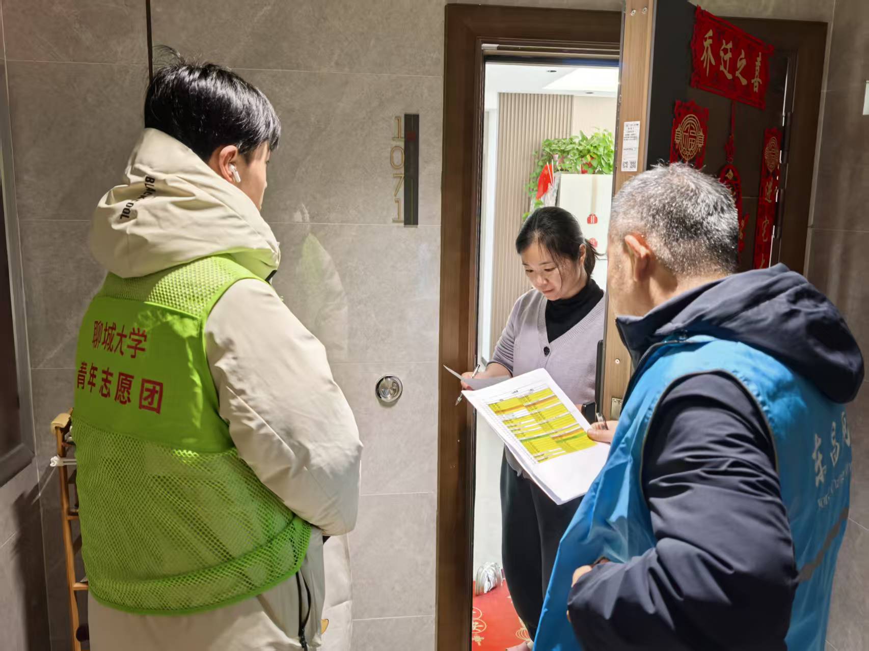 活动前期,志愿者提前熟悉问卷内容,围绕社区知识科普、校园周边安全等八大调研维度梳理讲解要点,确保入户时能够清晰、准确地为居民答疑解惑。走访过程中,志愿者分组行动,礼貌敲门入户,向居民详细说明本次调研的目的与意义,并耐心引导居民完成问卷填写。