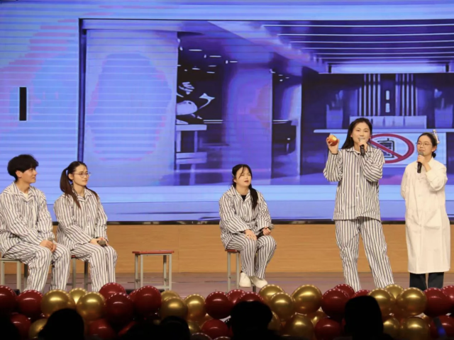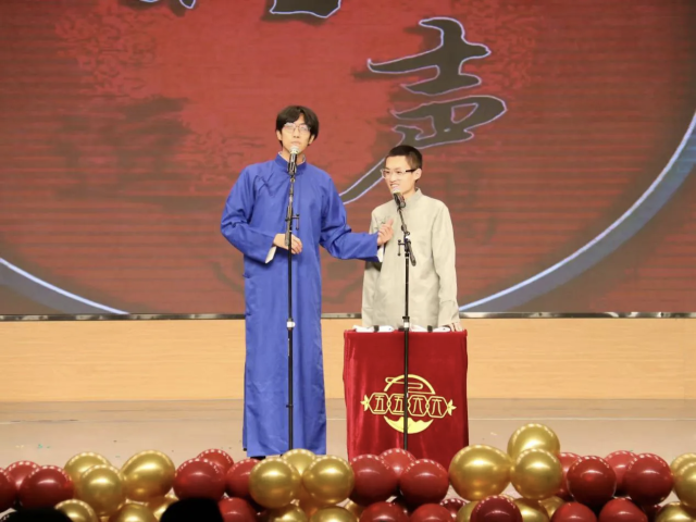 星火破晓,照彻征途;青春奔涌,绘就华章。辅导员老师深情演绎《New Boy》,以明快的节奏点燃对未来的无限憧憬;相声《大保镖》妙语连珠、包袱不断,令现场掌声与欢笑此起彼伏;歌曲《不再犹豫》展现了青年学子追逐梦想的坚定决心,激昂的旋律让现场观众感受到青春一往无前的蓬勃力量;小品《聊大旅游团》以轻松诙谐的方式揭示旅游团宰客与网红营销背后的消费陷阱,呼吁观众提高警惕、谨防诈骗;朗诵《八秩回响 青春作答》则以沉稳有力的声线,字字铿锵,传递青年学子胸怀家国、勇担时代使命的真挚情怀。
