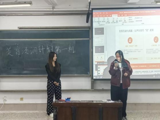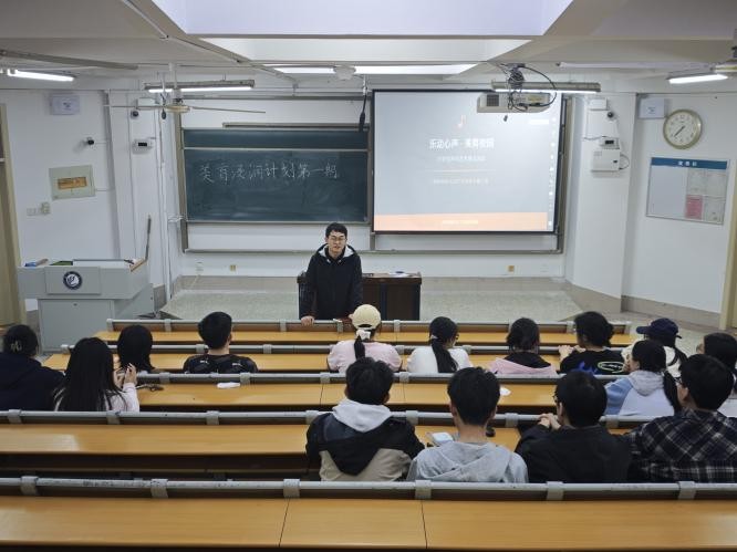 为提升学生审美素养,丰富学生精神文化生活,4月10日,数学与系统科学学院“美育浸润计划”第一期声乐体验课于11号教学楼A204教室举办,本次活动由辅导员牛玉帅主持,邀请音乐与舞蹈学院安若雨、曹友泽两名同学主讲,2025级部分同学参加。