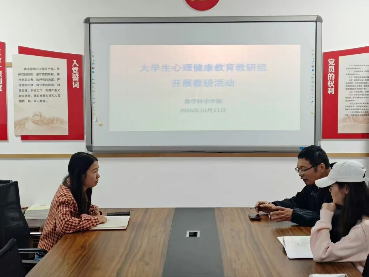 新的学期已经拉开序幕,为进一步提升《大学生心理健康教育》课程任课教师的教育教学能力,激励教师不断探索心理课堂教学艺术和课堂教学的有效性,10月11日上午,色情小说 大学生心理健康教育教研组在11号楼B304室组织开展教研活动,教研组全体教师参加活动。